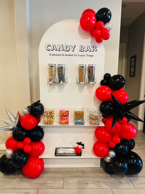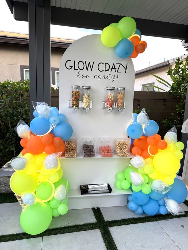 Get ready for a candy-filled delight with our awesome candy wall! Standing at 7 feet tall with 4 wall-mounted dispensers and 4 scoop dispensers, it’s a kid’s dream come true and totally kid-friendly.