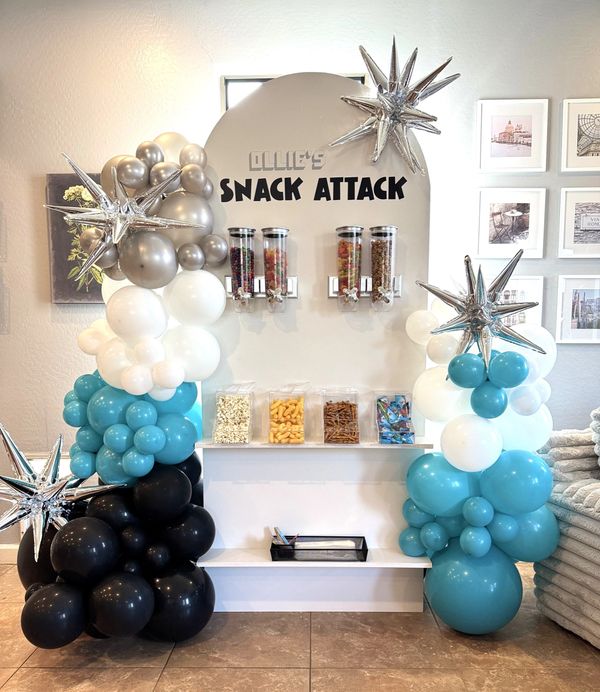 Check this out – our candy wall is way more than just a candy wall! Picture all the snack bar options you can fill it with (popcorn, goldfish, pretzels, etc.), or imagine it as a super cute cereal dispenser for a morning brunch. If you can dream it, we can make it a reality!